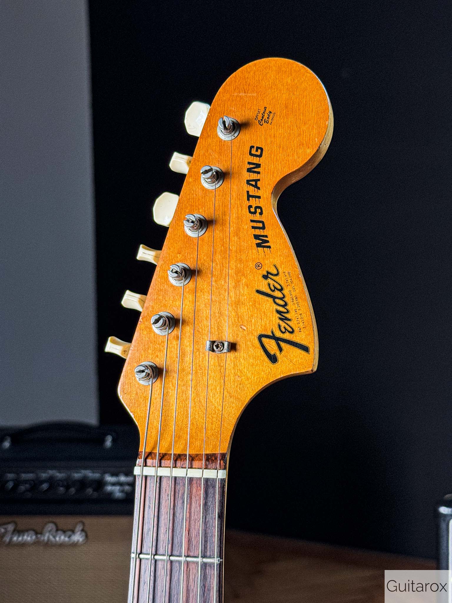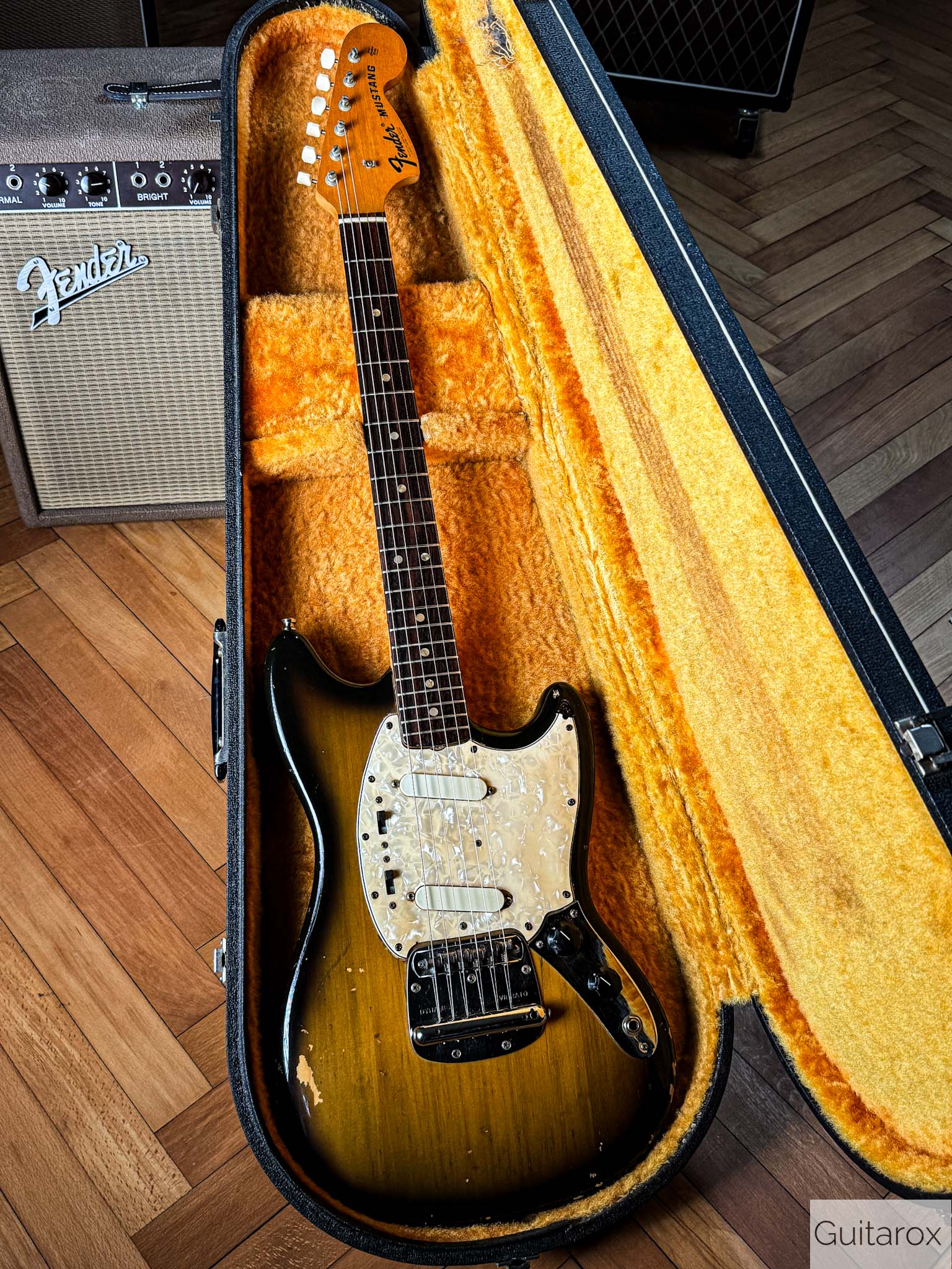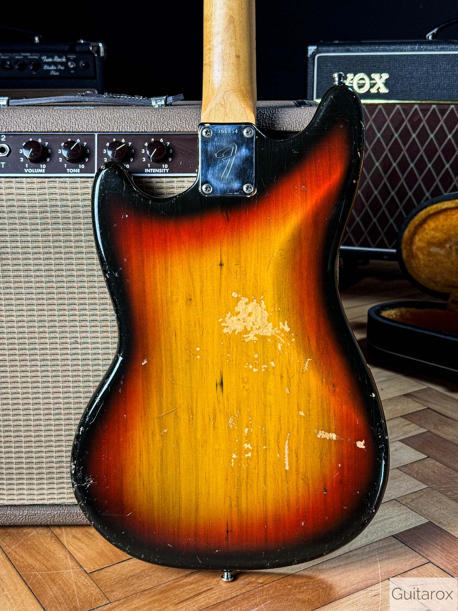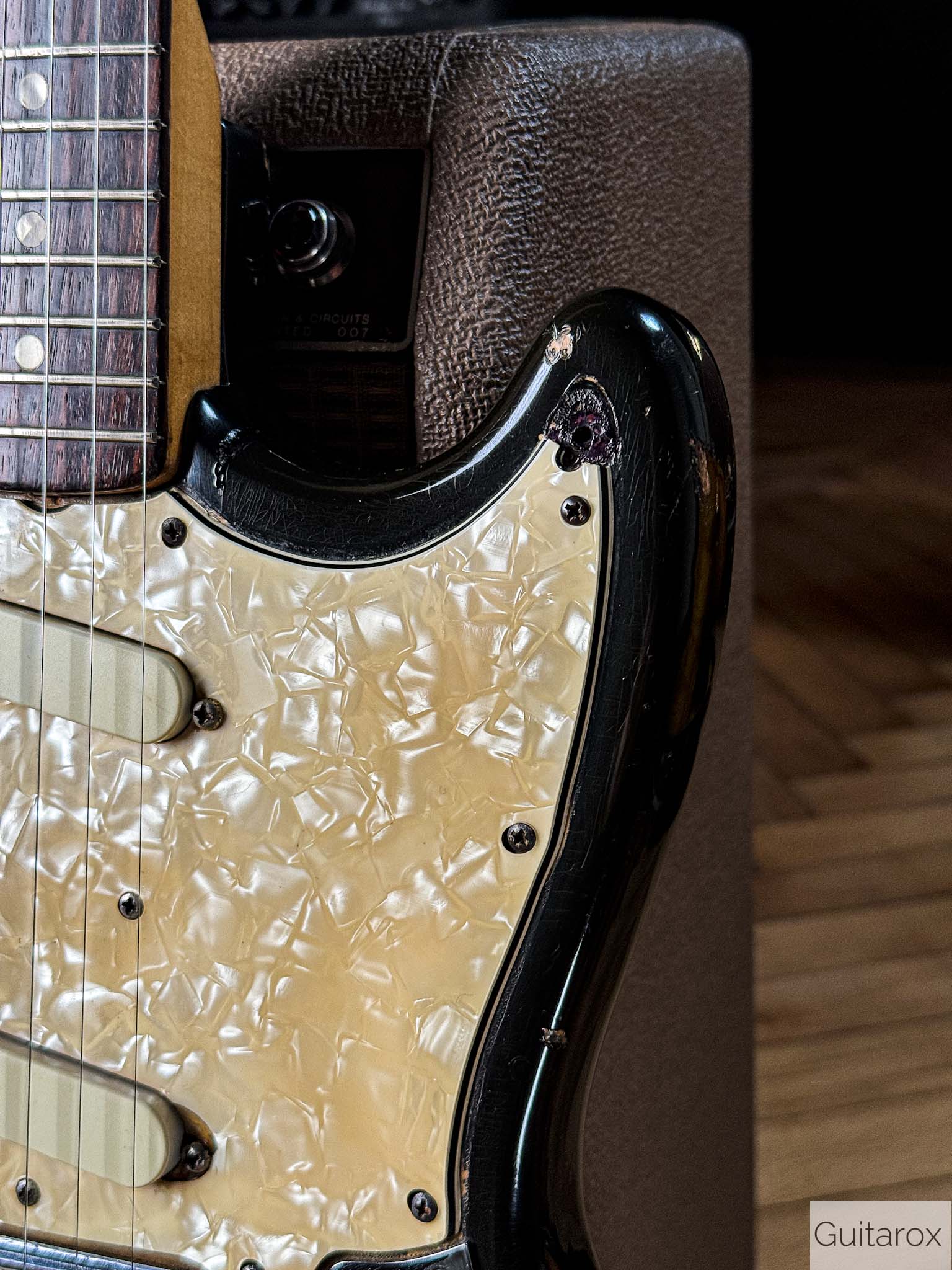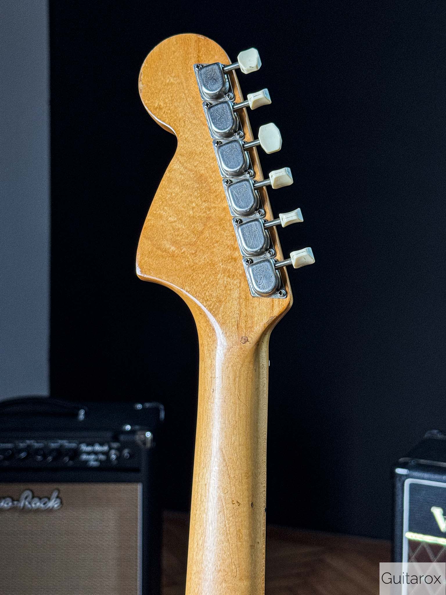 Die Gitarre besticht durch ihren unverwechselbaren Vintage-Charakter. Der Hals mit dem Datumsstempel vom März 1972 liegt angenehm in der Hand und bietet das typische Spielgefühl, das man nur von eingespielten Instrumenten aus dieser Ära kennt. Die Mustang ist bekannt für ihre Vielseitigkeit – von bissigen Leadsounds bis hin zu perkussiven Rhythmus-Texturen.