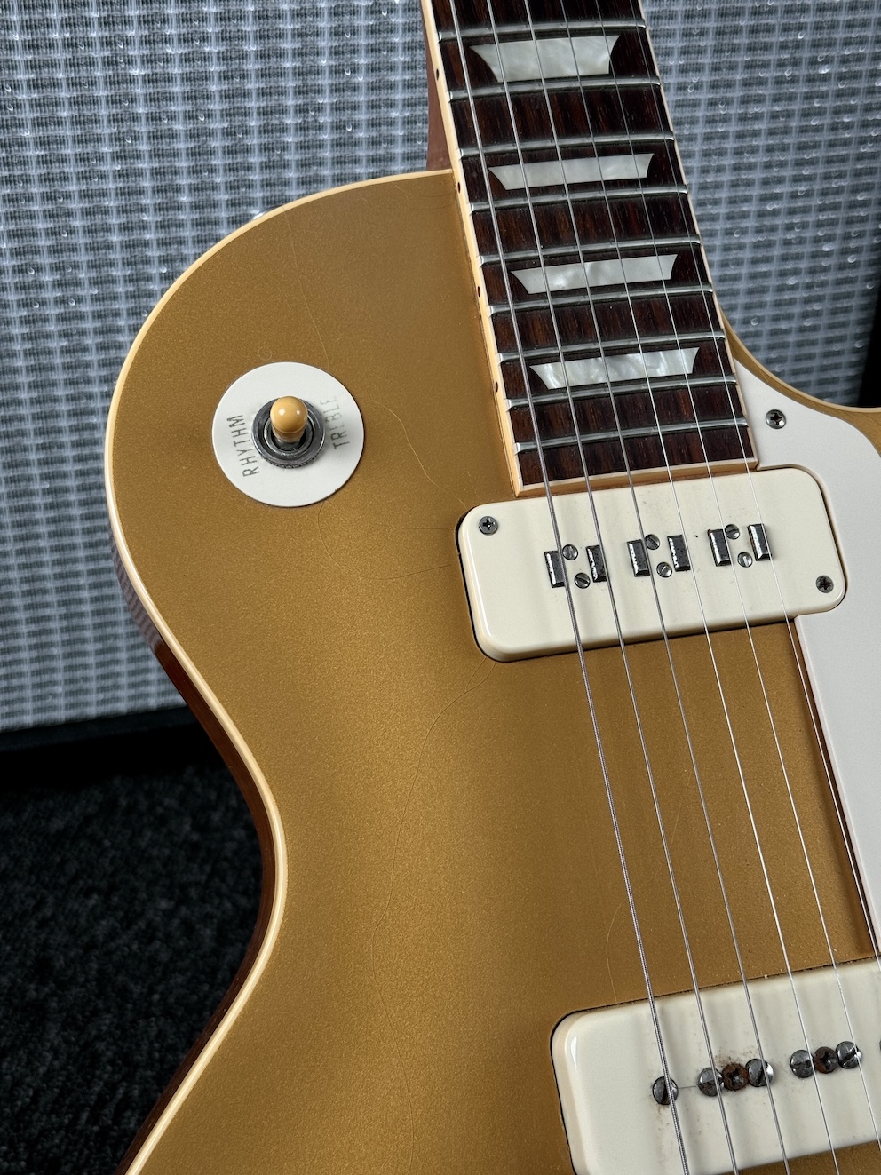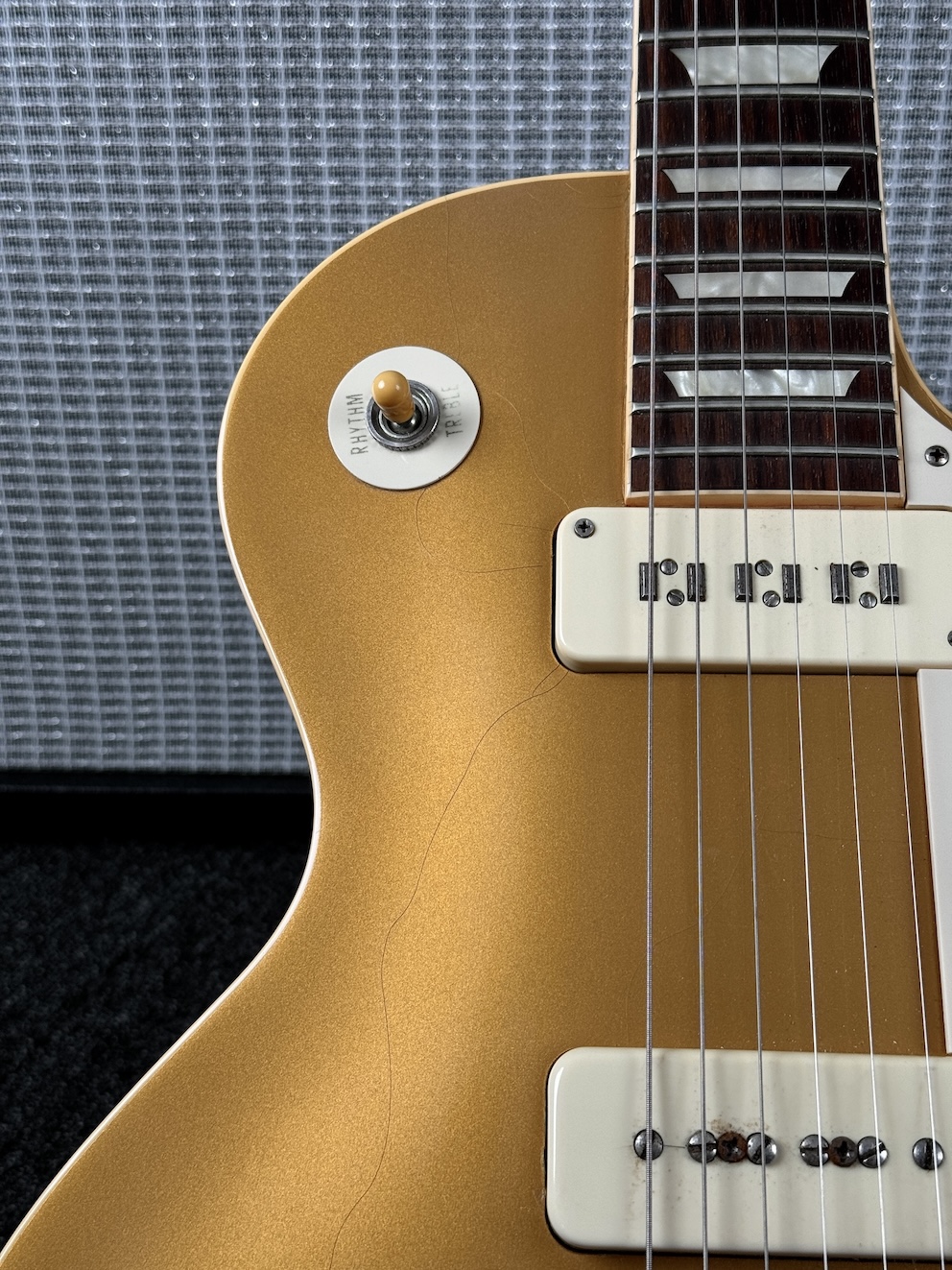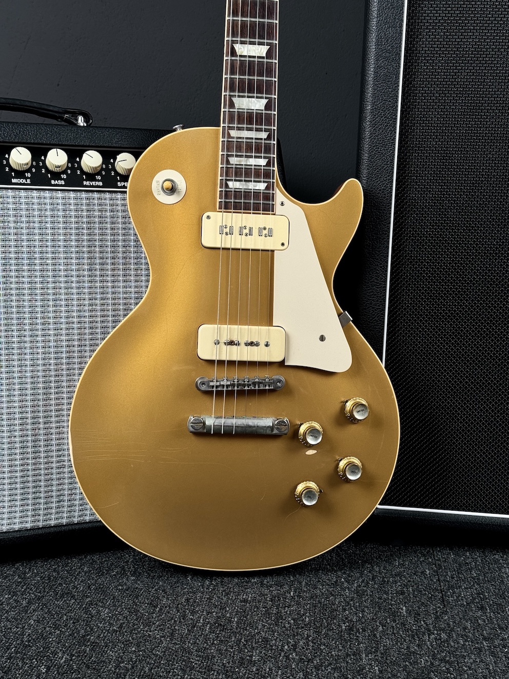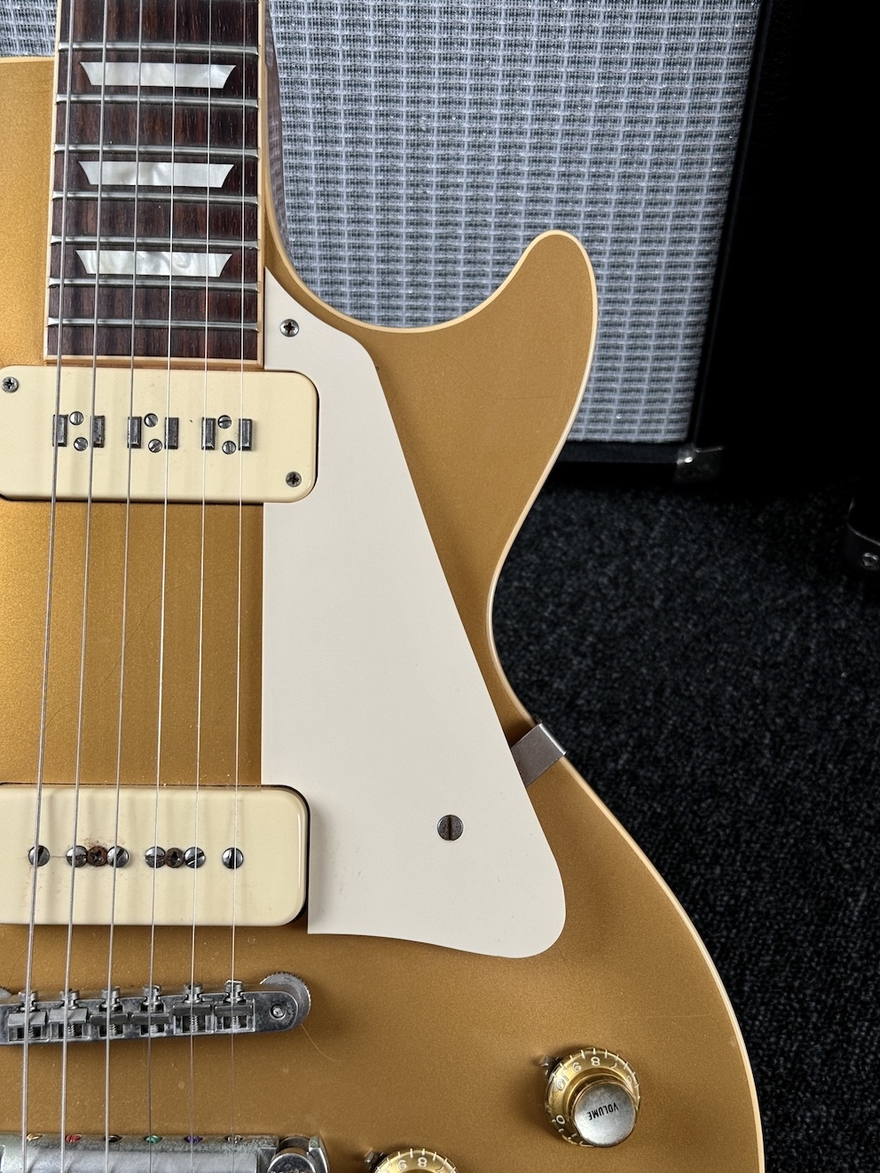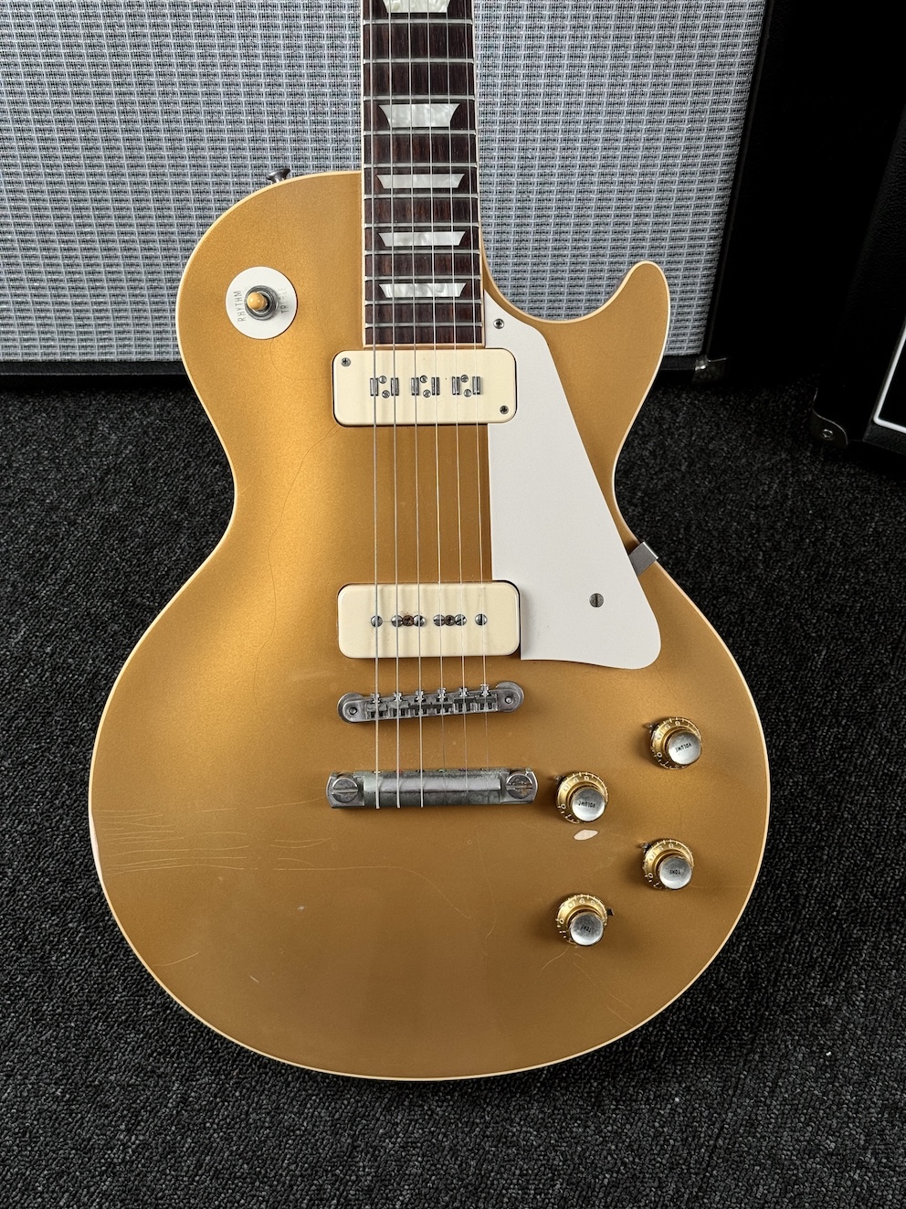 Zum Verkauf kommt diese wunderschöne Gibson 1956 Les Paul VOS. Eine herrliche Player mit einigen Modifikationen. Seymour Staple und P100 bringen die Paula zum Singen!! Unter 4kg wiegt sie und die gibt man nicht mehr gern aus der Hand. Mechaniken aus den 60ern wurden verbaut. Das ist so ein Gerät, was man einfach nicht mehr aus der Hand geben möchte – unglaublich geil!!!