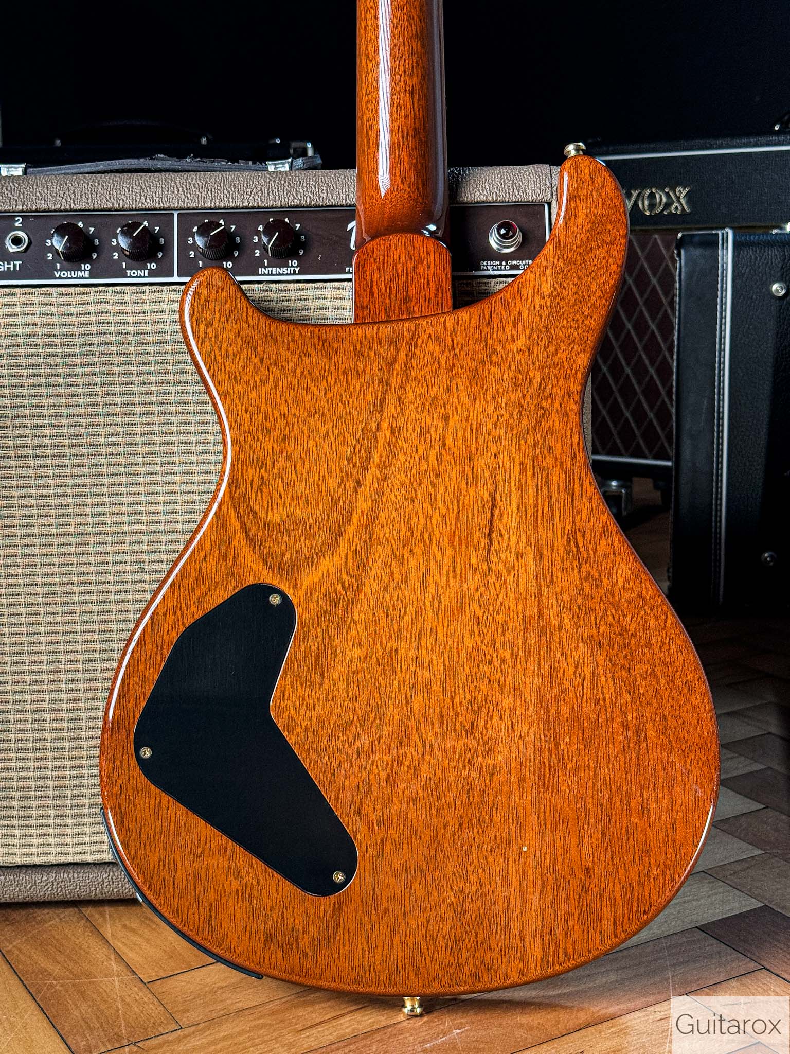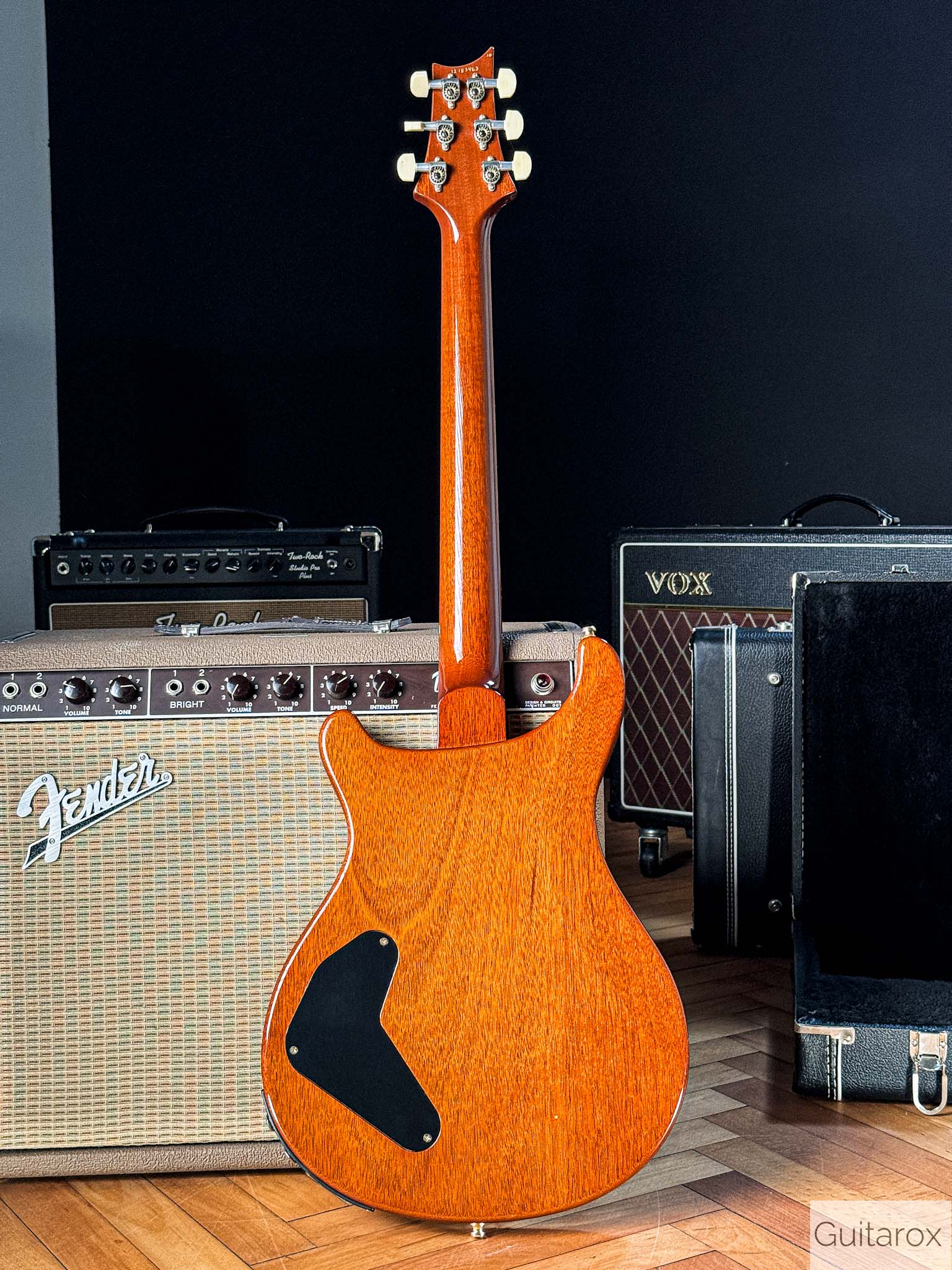 Das Herzstück ist das atemberaubende “10-Top” mit dem edlen Black Gold Burst Finish, das die hochwertige Ahorndecke perfekt in Szene setzt. Der Mahagoni-Korpus liefert dabei das gewohnt warme und resonante Fundament, für das PRS weltberühmt ist. Die Bespielbarkeit ist, wie man es von einem Core-Modell erwartet, absolut erstklassig. Ob für komplexe Akkordstrukturen oder flüssige Lead-Lines, diese Gitarre schmiegt sich förmlich an. Ein echtes Sammlerstück mit dem Charakter eines Arbeitstiers, das darauf wartet, endlich wieder auf die Bühne oder in den Aufnahmeraum zu dürfen.