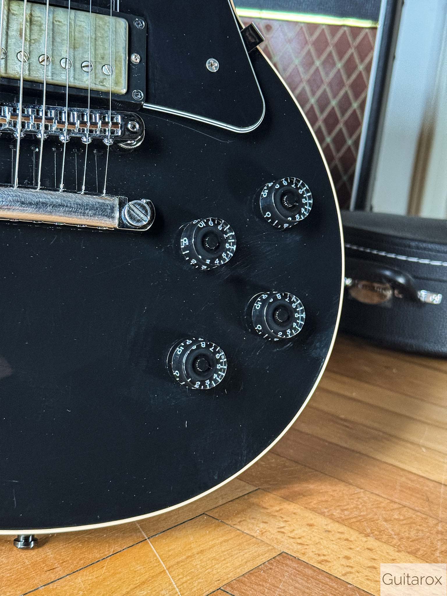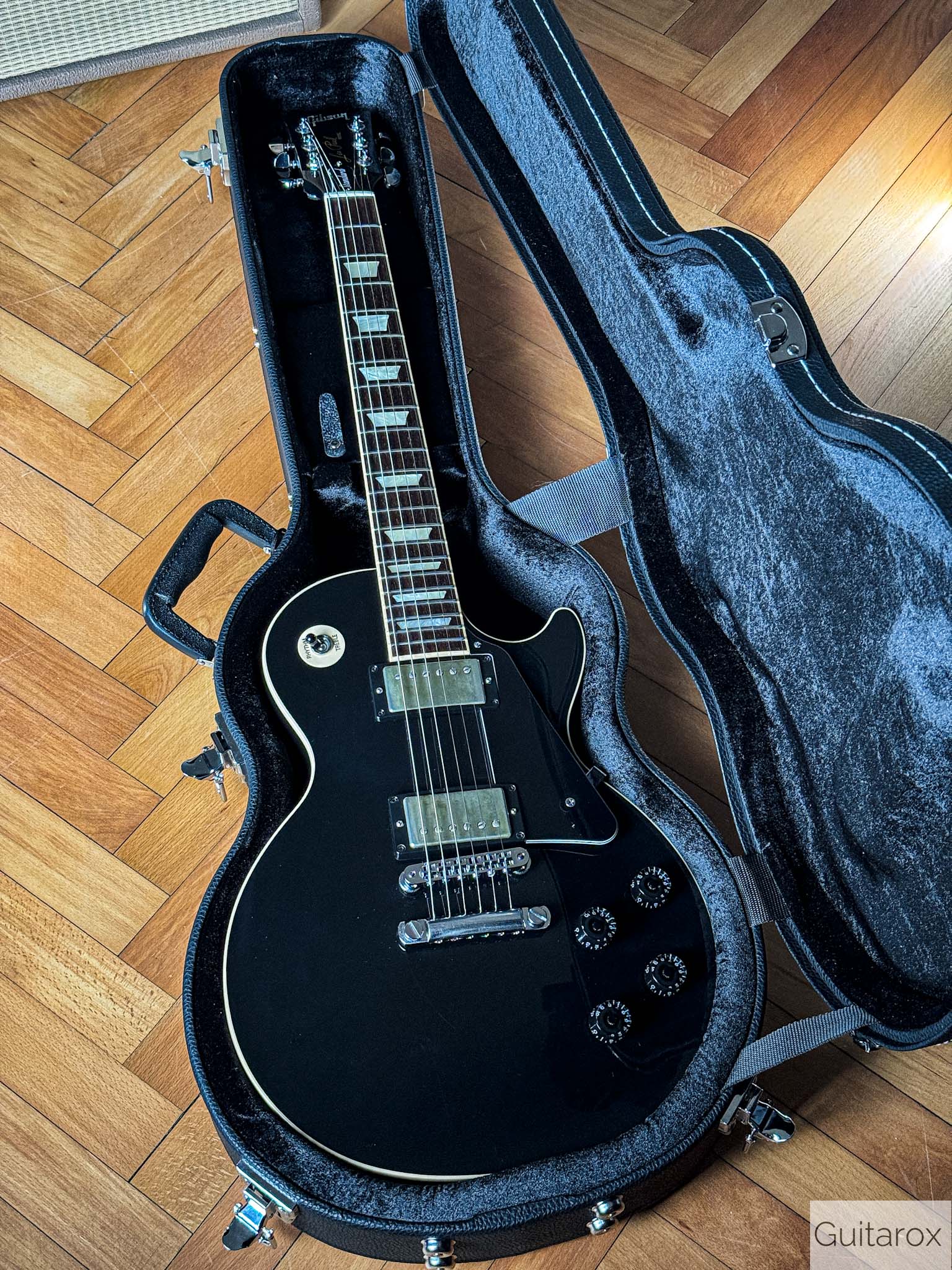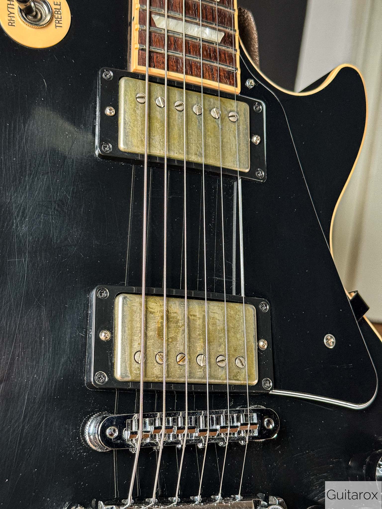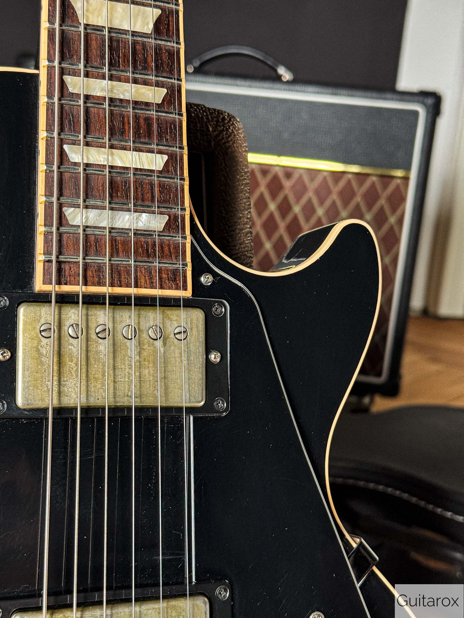 Zum Verkauf kommt diese wunderschöne 2016 Gibson Les Paul Standard Ebony. Die Paula wird in einem guten und ehrlich gespielten Zustand ausgeliefert. Kein Sammlerstück, sondern ein eingespieltes Player Instrument. Die Plastikteile wurde gegen schwarze ersetzt, PU Cover, Knobs und Schlagbrett – sieht geil aus. Verbaut sind 59er Clones und Potis von Mojotone. Klingt richtig gut! Das asymmetrische Slim Taper Halsprofil ist geschmeidig und die 4,14kg sind definitiv leicht für eine Standard. Die Paula macht definitiv großen Spaß und man kann genial abrocken. Auslieferung erfolgt in einem neuen Thomas SC Case.