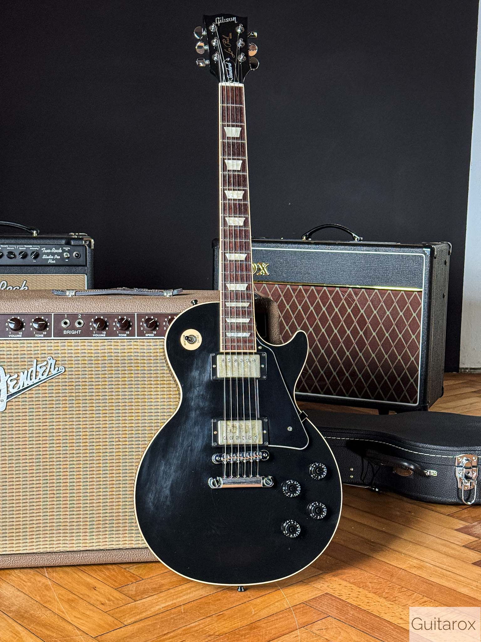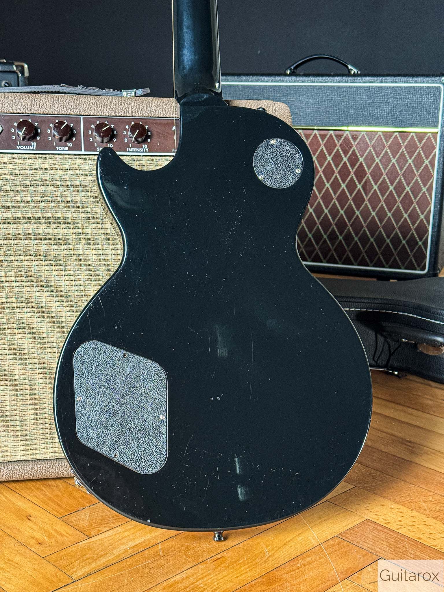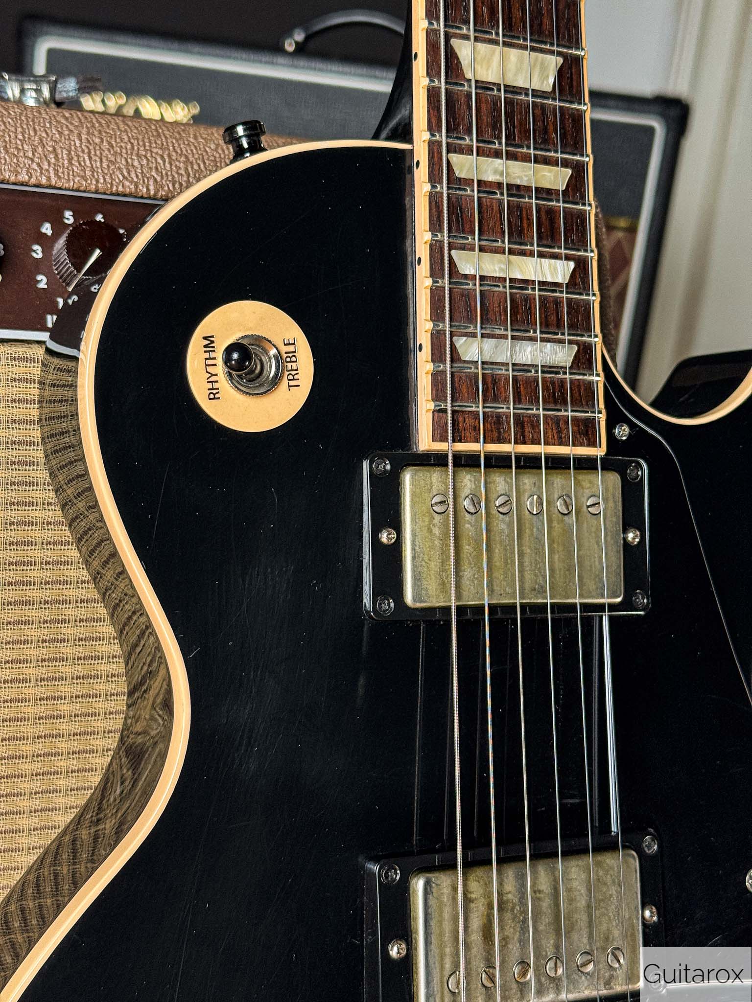 Zum Verkauf kommt diese wunderschöne 2016 Gibson Les Paul Standard Ebony. Die Paula wird in einem guten und ehrlich gespielten Zustand ausgeliefert. Kein Sammlerstück, sondern ein eingespieltes Player Instrument. Die Plastikteile wurde gegen schwarze ersetzt, PU Cover, Knobs und Schlagbrett – sieht geil aus. Verbaut sind 59er Clones und Potis von Mojotone. Klingt richtig gut! Das asymmetrische Slim Taper Halsprofil ist geschmeidig und die 4,14kg sind definitiv leicht für eine Standard. Die Paula macht definitiv großen Spaß und man kann genial abrocken. Auslieferung erfolgt in einem neuen Thomas SC Case.