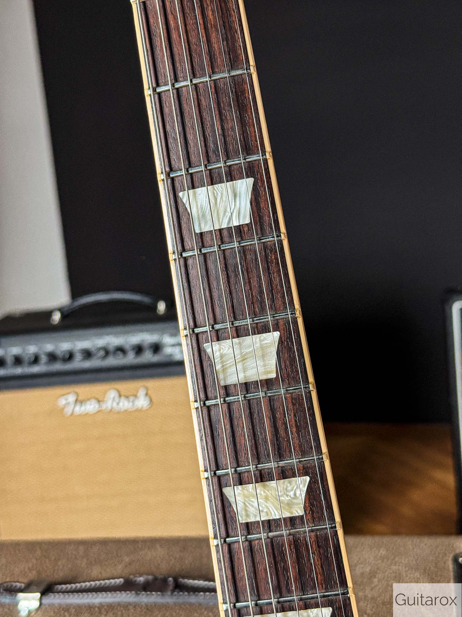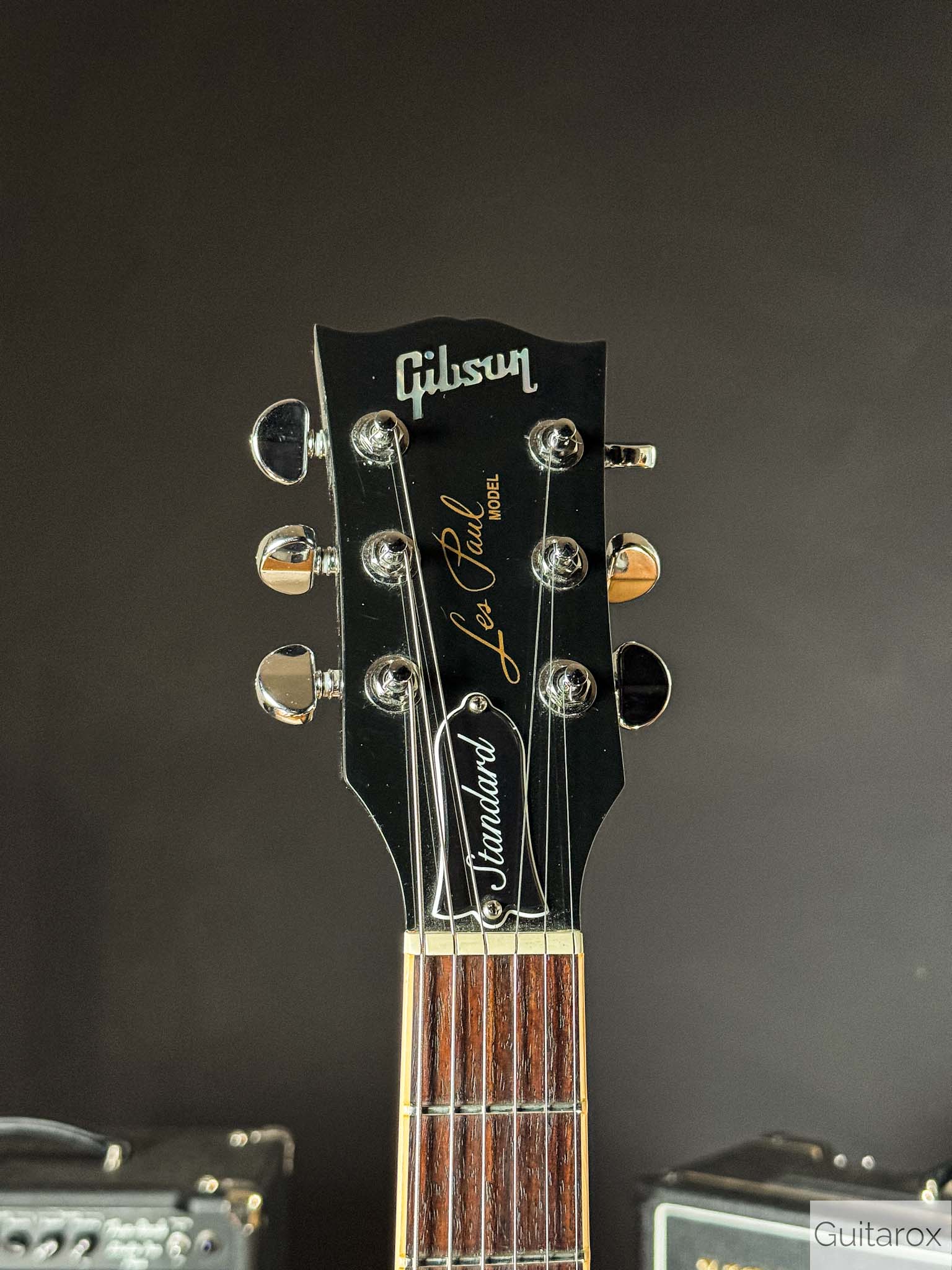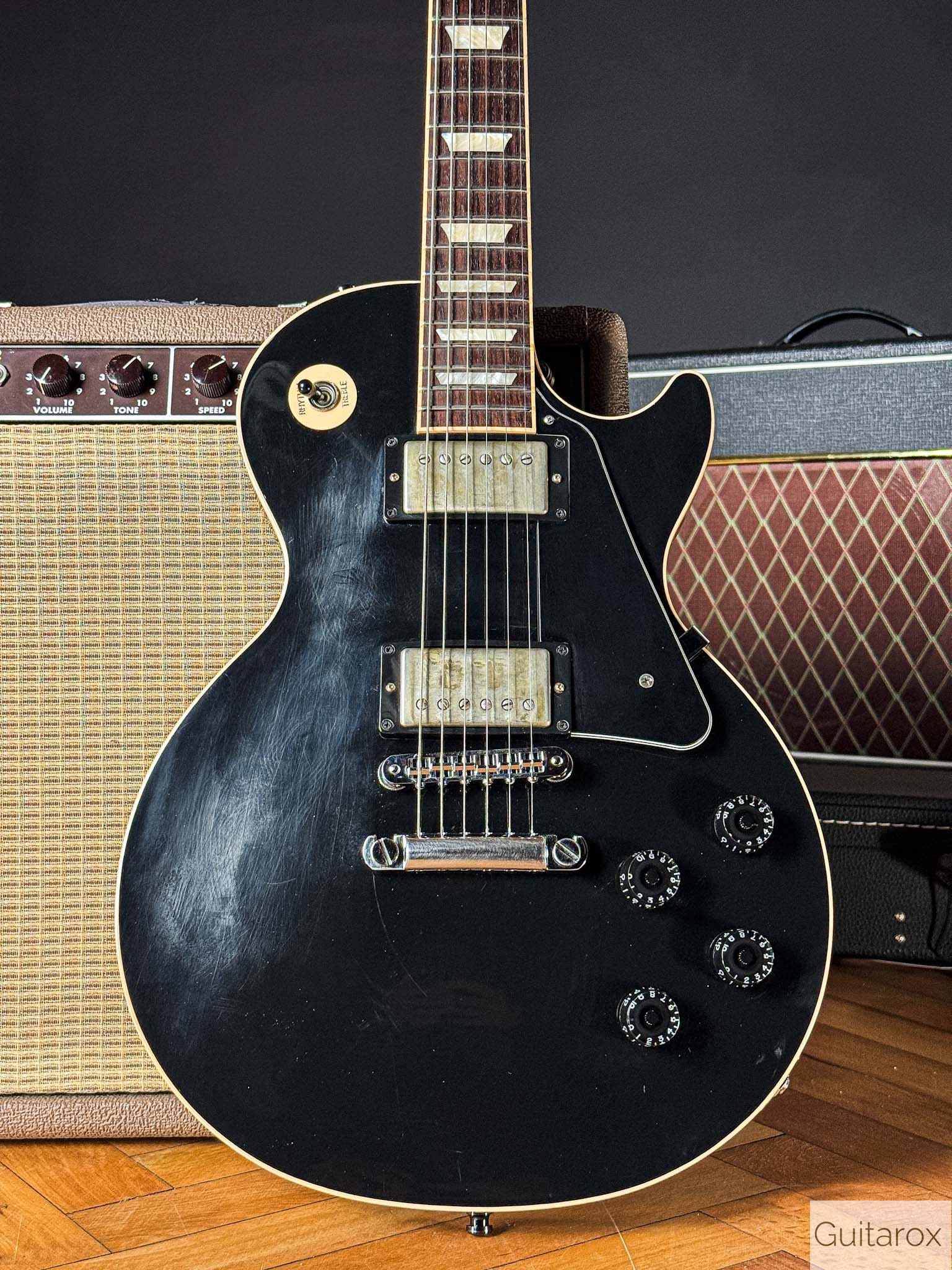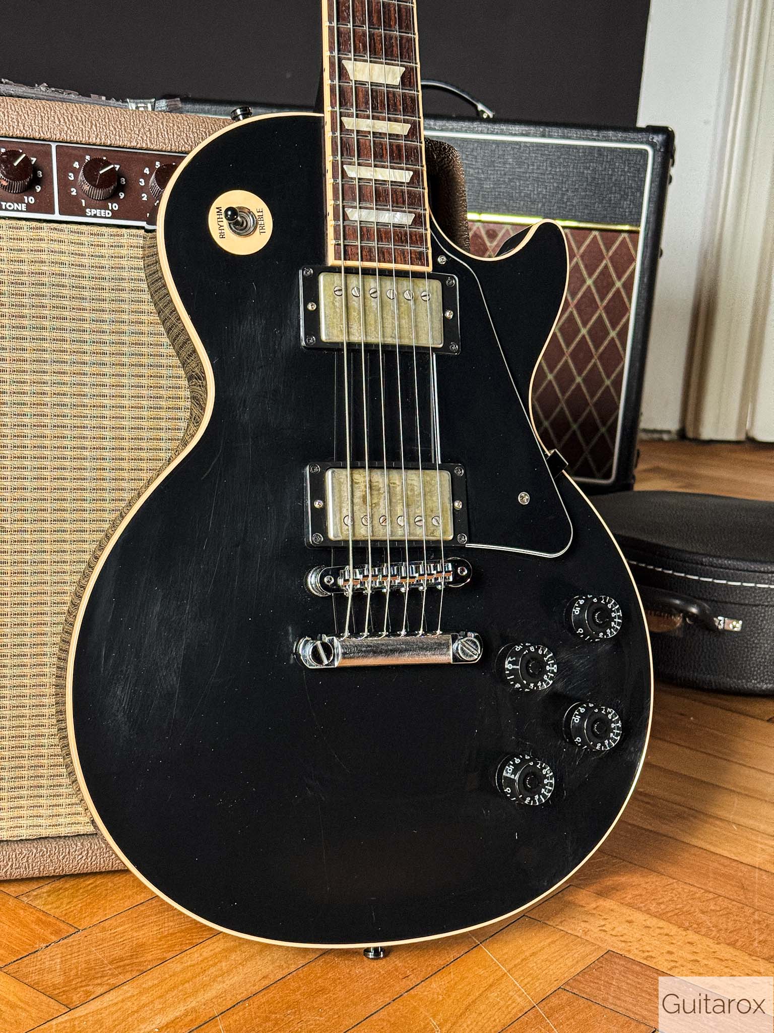 Zum Verkauf kommt diese wunderschöne 2016 Gibson Les Paul Standard Ebony. Die Paula wird in einem guten und ehrlich gespielten Zustand ausgeliefert. Kein Sammlerstück, sondern ein eingespieltes Player Instrument. Die Plastikteile wurde gegen schwarze ersetzt, PU Cover, Knobs und Schlagbrett – sieht geil aus. Verbaut sind 59er Clones und Potis von Mojotone. Klingt richtig gut! Das asymmetrische Slim Taper Halsprofil ist geschmeidig und die 4,14kg sind definitiv leicht für eine Standard. Die Paula macht definitiv großen Spaß und man kann genial abrocken. Auslieferung erfolgt in einem neuen Thomas SC Case.