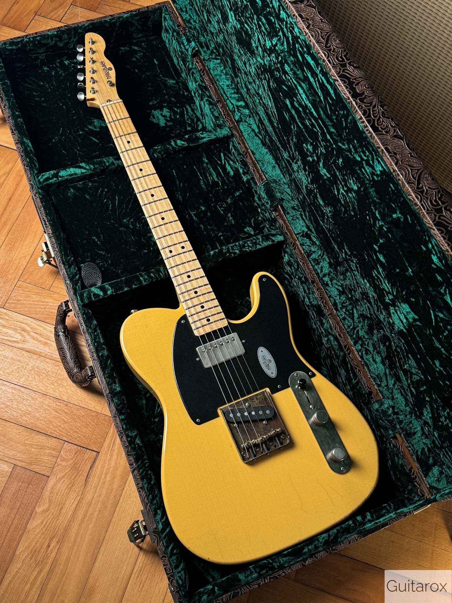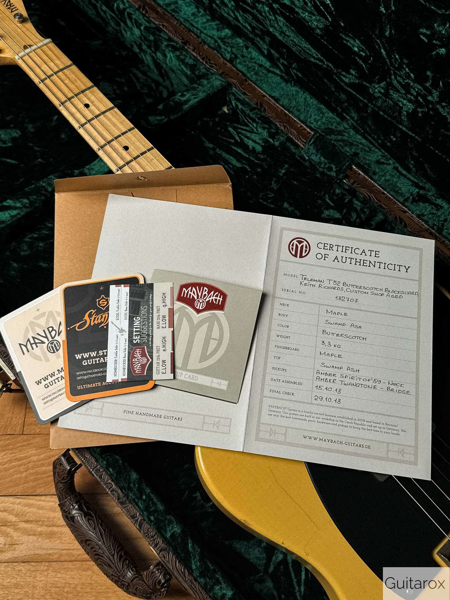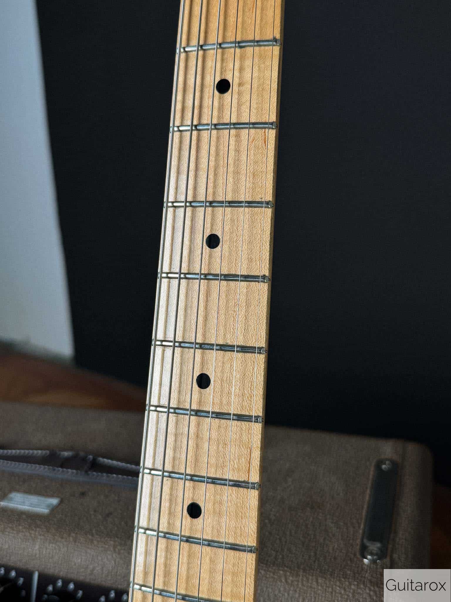 guter Zustand mit minimalen Gebrauchsspuren. Inklusive originalem Maybach-Koffer, Zertifikat und Hangtags. Die leichten, schwingfreudigen Hölzer sorgen bei nur 3,4 kg für einen offenen, resonanten Ton, wie man ihn sonst von deutlich teureren Gitarren kennt. Maßgeblich daran beteiligt sind die exzellenten Amber Pickups, die zur absoluten Spitzenklasse zählen. Der einteilige Ahornhals im 50s-Profil liegt satt in der Hand, bleibt aber komfortabel spielbar – kräftig, jedoch kein extremer „Nocaster“-Knüppel. Mit frischem Setup spielt sich die Gitarre auf Top-Niveau. Nitro-Lackierung mit Aging, hochwertige Gotoh-Hardware und eine hervorragend einstellbare Brücke liefern authentisches Vintage-Feeling. Eine Maybach, die dem Namen „Keith“ mehr als gerecht wird.